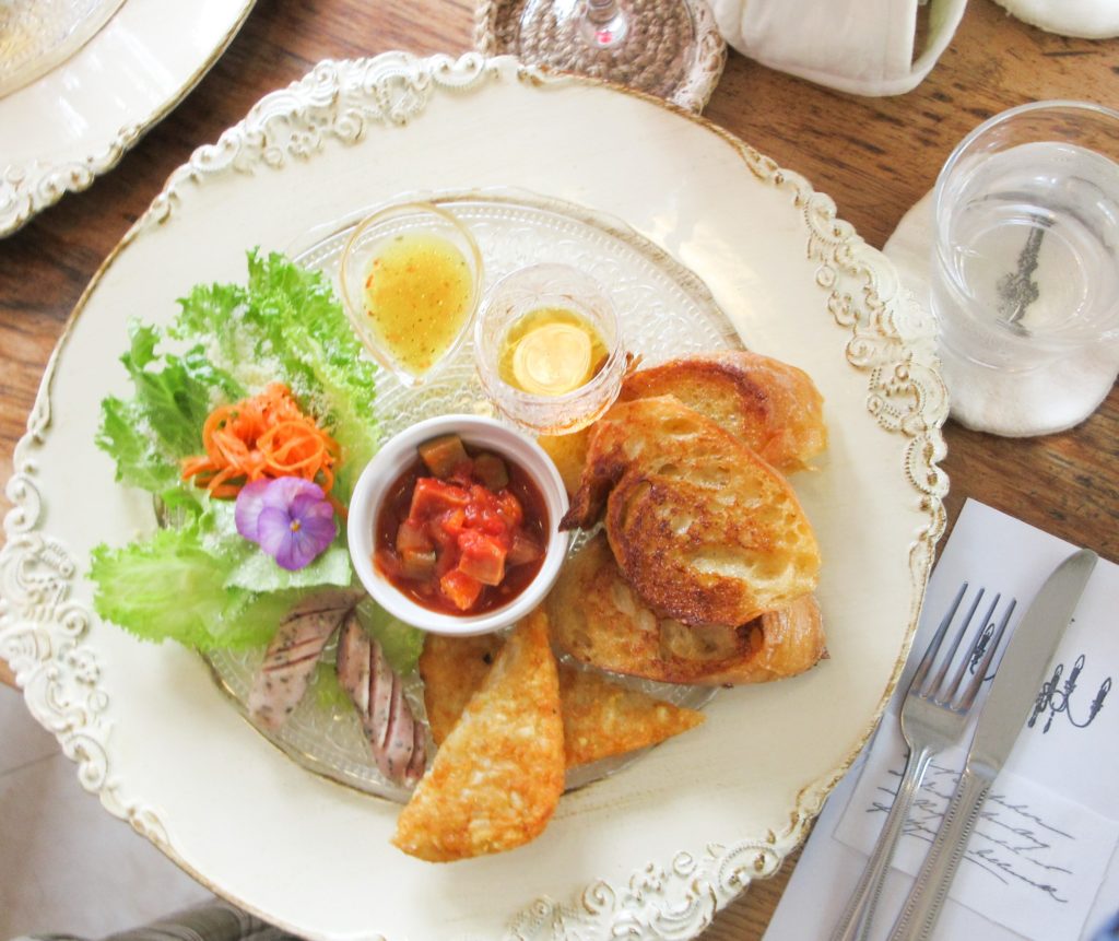 ハッシュポテトやサラダのついたフレンチトーストもあり、